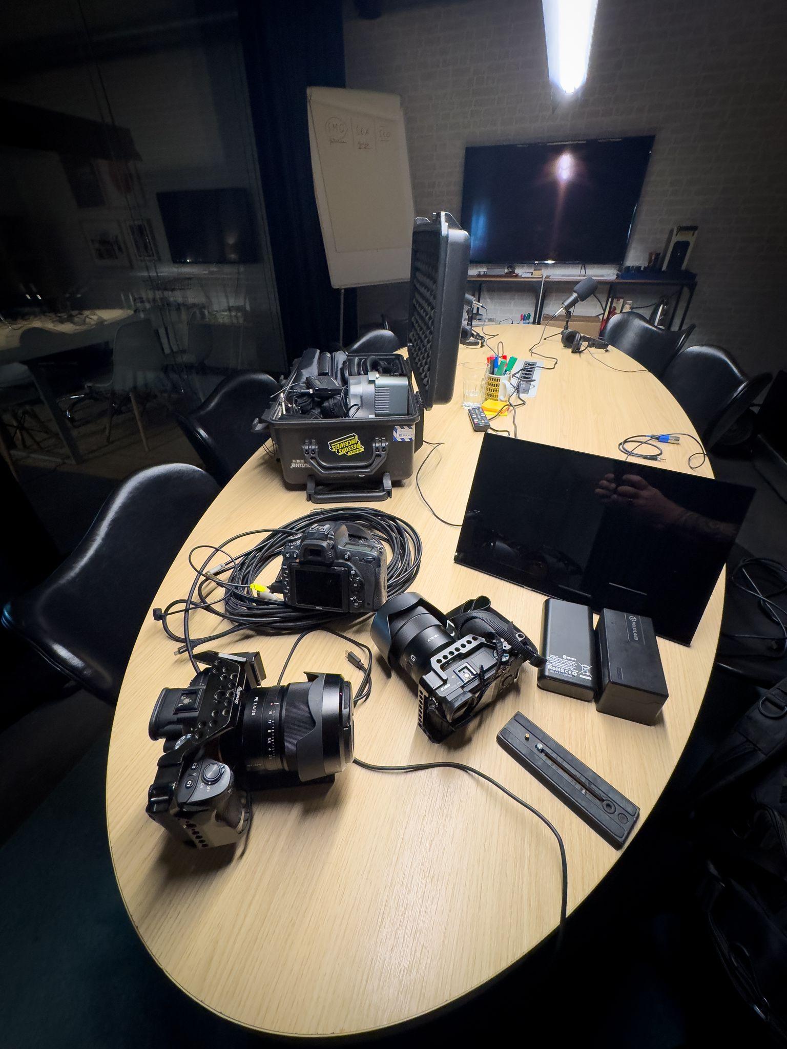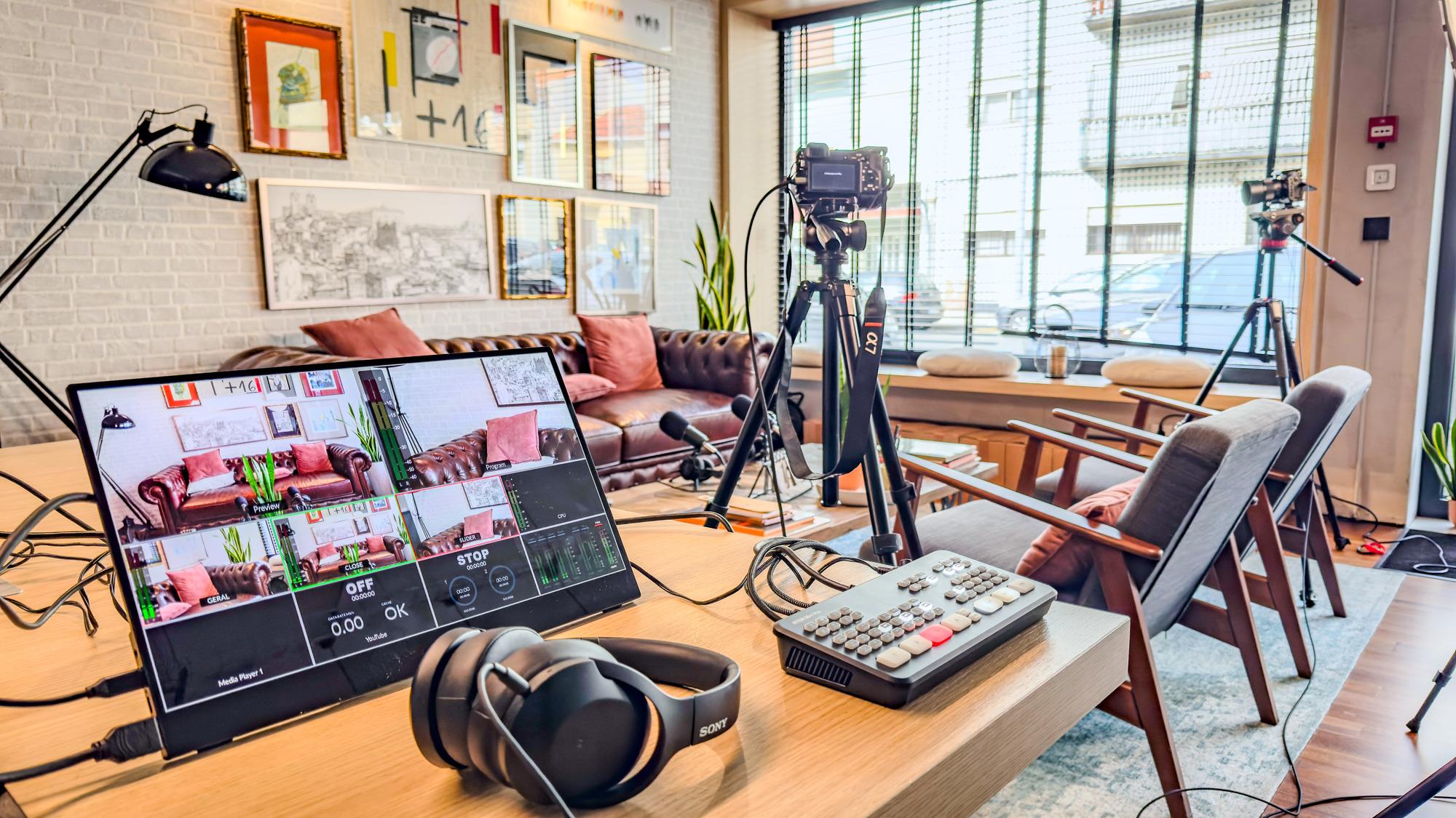 O estúdio está totalmente equipado, pelo que não é necessário trazer o teu próprio material. Dispomos de microfones de alta qualidade, câmaras de topo, e várias lentes e opções de iluminação para garantir um resultado de excelência.