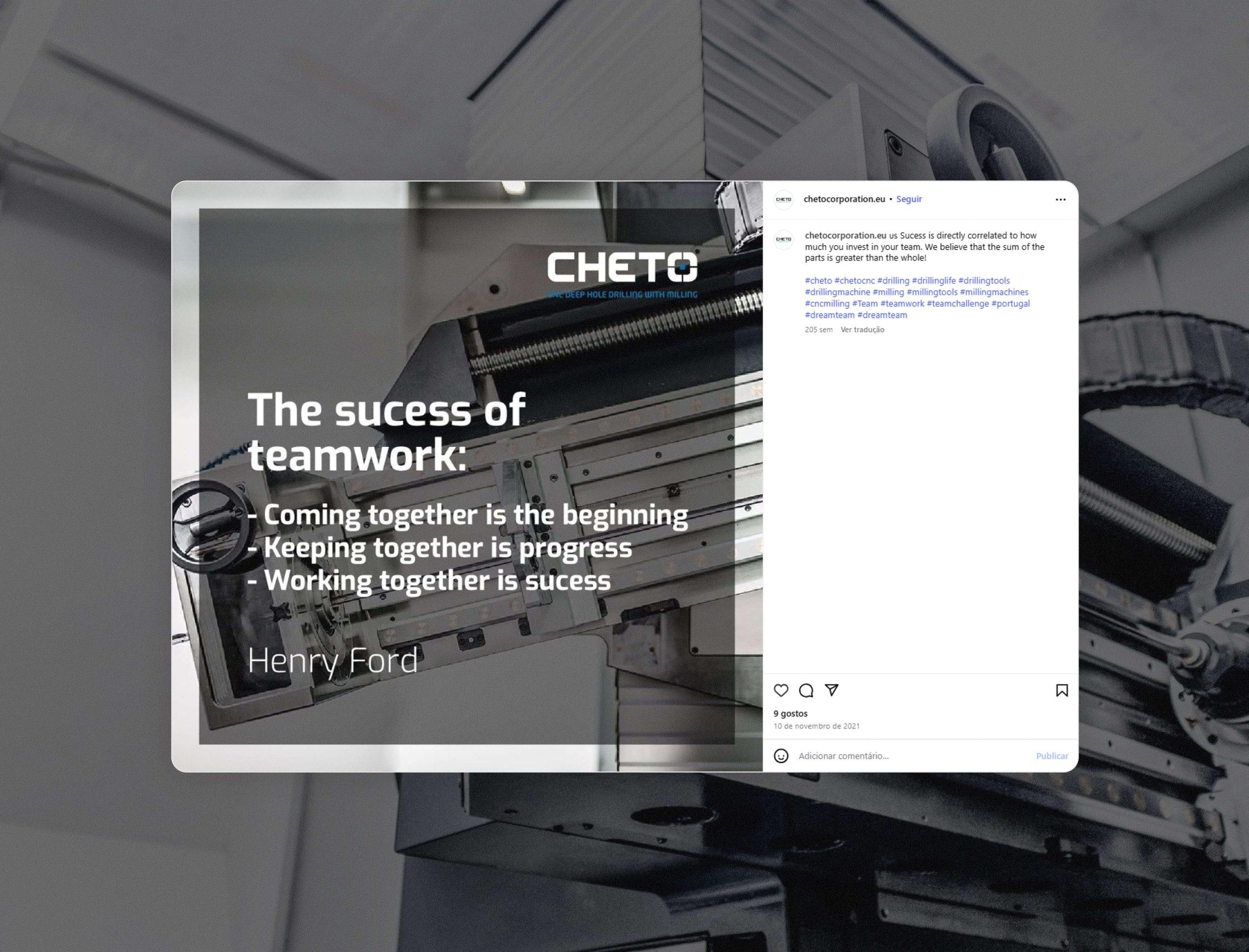 A CHETO é uma empresa industrial portuguesa especializada no desenvolvimento e fabrico de máquinas CNC de perfuração profunda, fresagem e soluções avançadas para moldes e matrizes. Reconhecida globalmente pela sua engenharia robusta, capacidade de inovação e personalização, a CHETO atua em setores altamente competitivos e internacionalizados