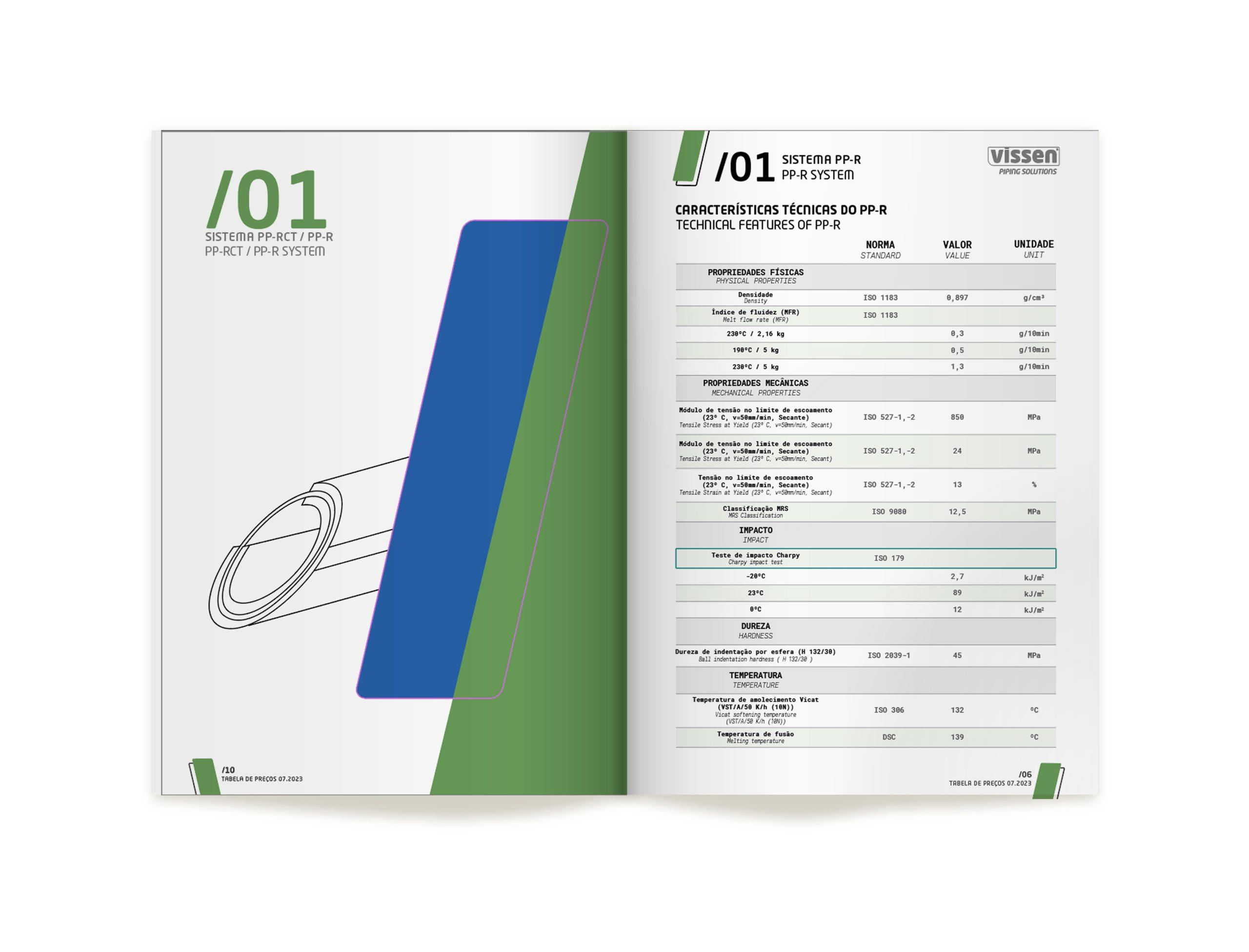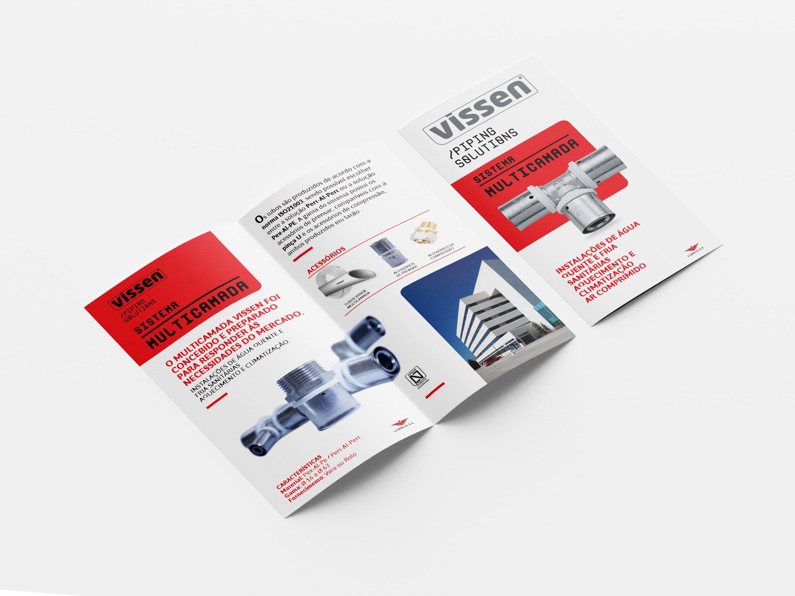 O trabalho combinou um estilo visual técnico e industrial com clareza informativa, reforçando a leitura de características, vantagens e certificações — essenciais no setor B2B.