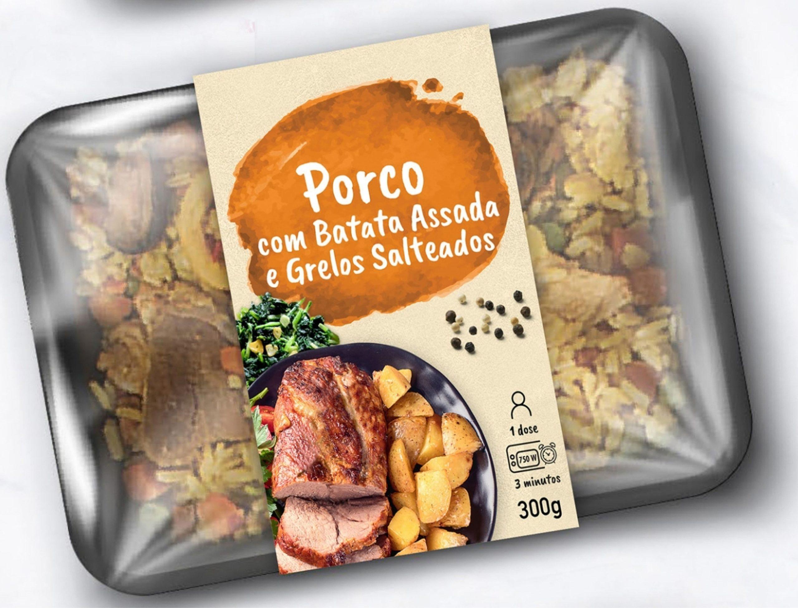 As fotografias dos pratos ganharam protagonismo para facilitar a identificação, enquanto os códigos de cor funcionam como auxiliares à navegação entre diferentes receitas. Incluímos iconografia clara para reforçar conveniência (porções, tempo e modo de aquecimento), facilitando a experiência no ponto de venda.