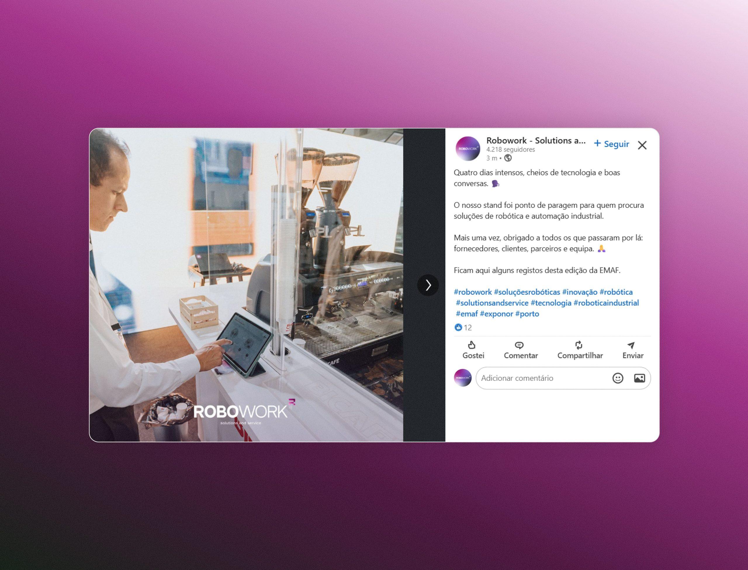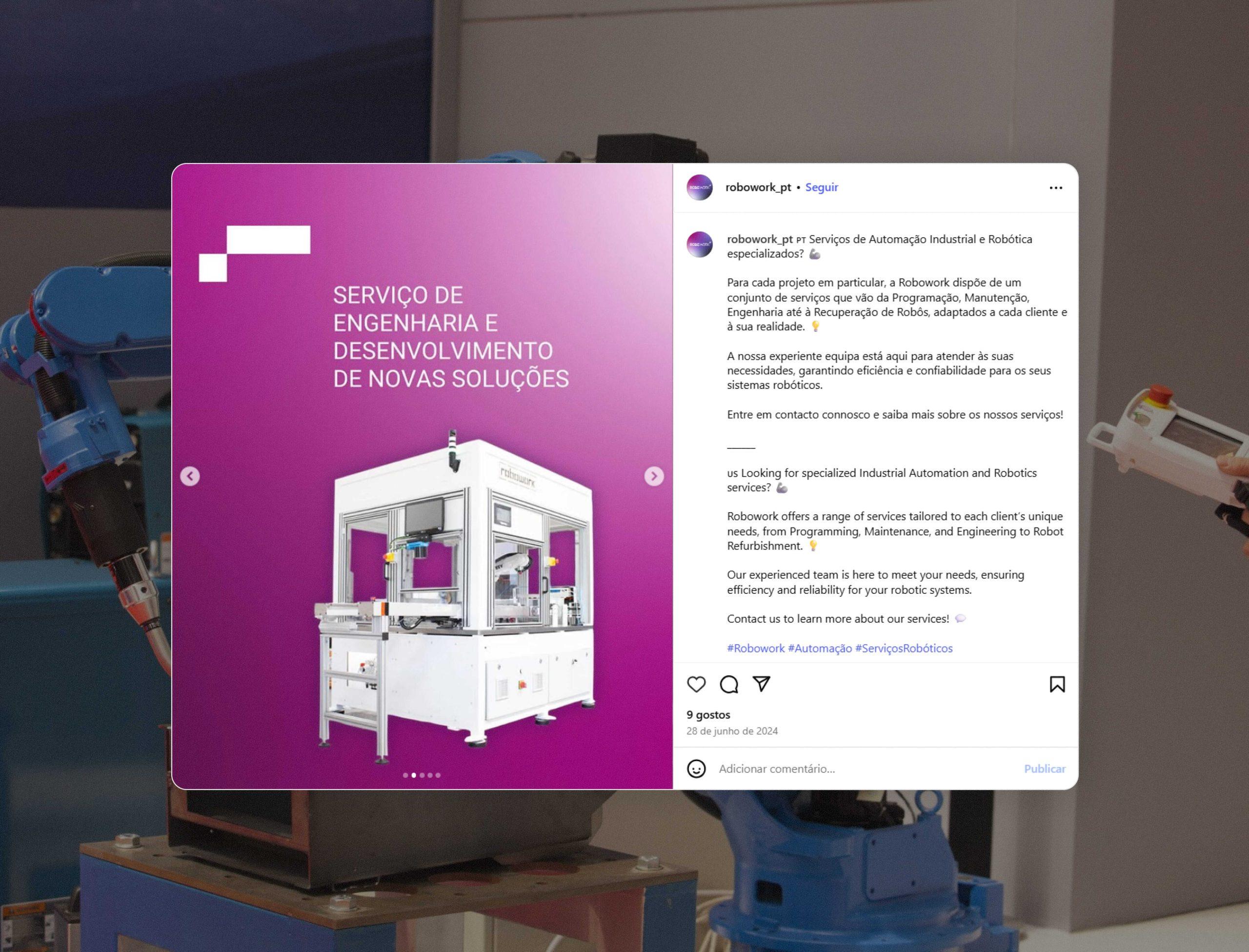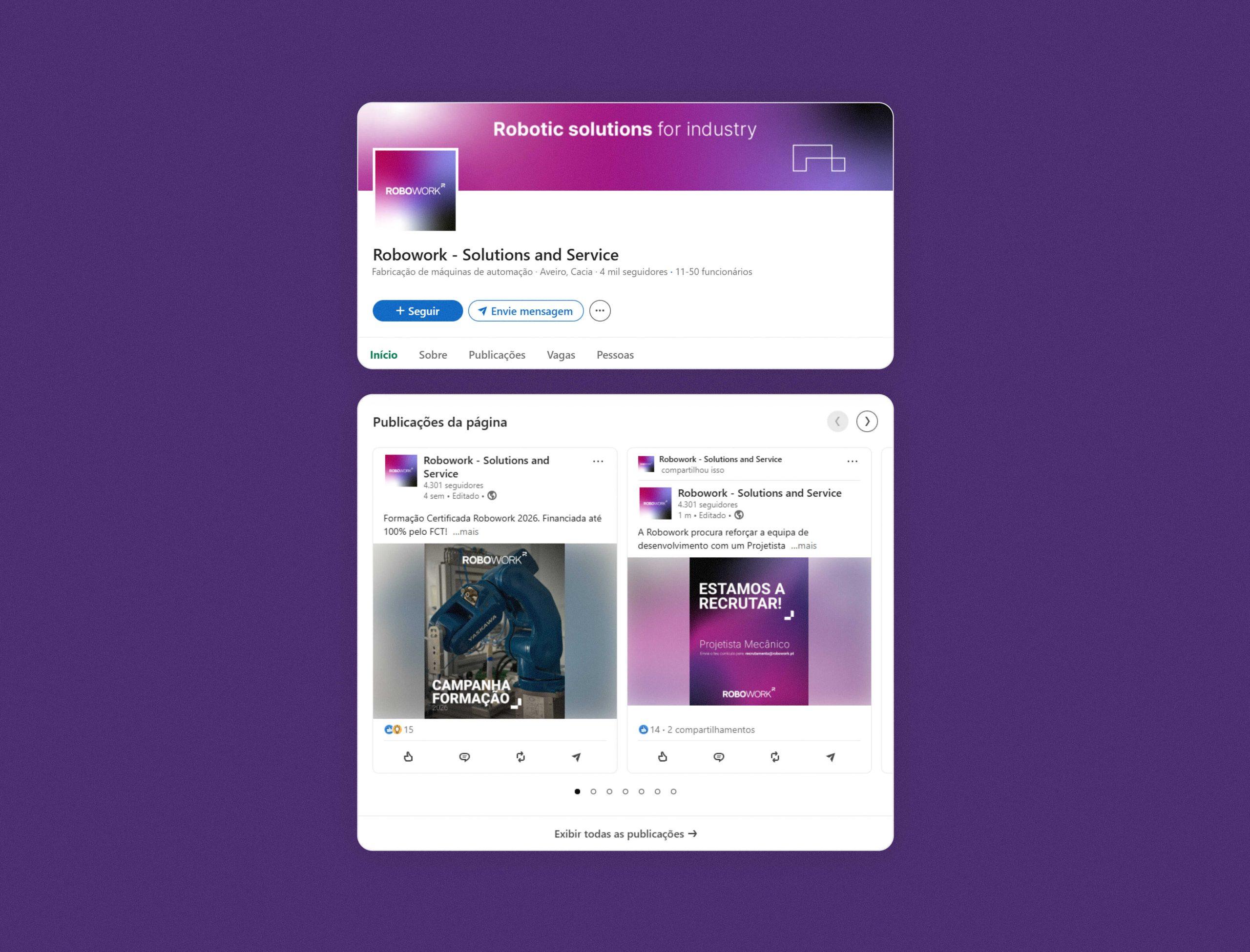 Reforçamos a perceção de valor da marca, alcançamos maior consistência visual e comunicacional, crescimento orgânico nas redes e projeção da Robowork como referência nacional em robótica industrial.